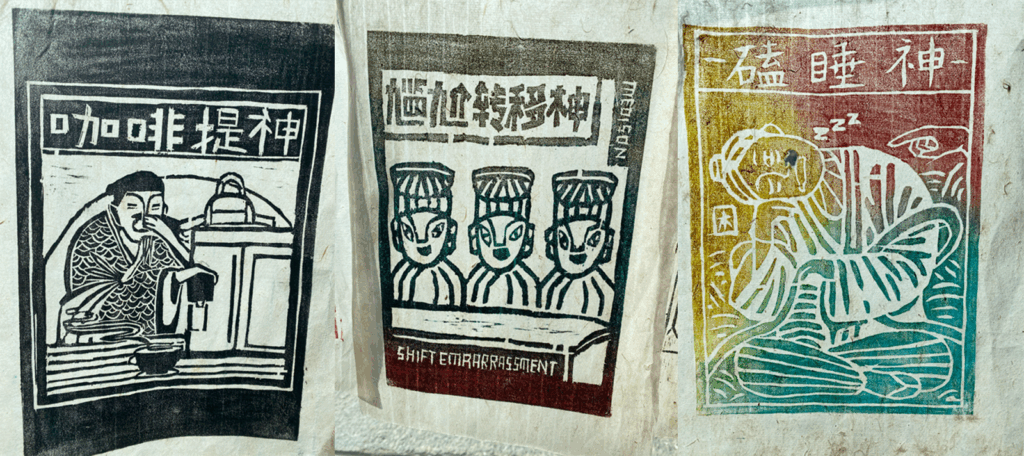 There was this great workshop / museum (one of many little workshop / museums!) for Báizú jiǎmǎ woodblock prints, that make small paper icons for the pantheon of local gods.